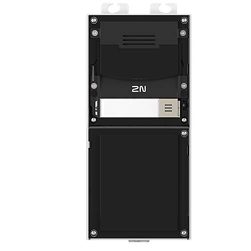 2N IP Verso 2.0 modular base unit without camera, 1 push-button, SIP-based, 2 Watt loudspeaker, black housing, IP54/IK08, PoE/12 VDC.