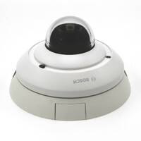 The FLEXIDOME IP panoramic 5000 MP is a discreet, aesthetic, panoramic camera in a compact design. The 5MP sensor operating at 15 fps provides full panoramic surveillance with complete area coverage and fine details. The camera offers full situational awareness and simultaneous E-PTZ views in high resolution. When mounted centrally on a ceiling, the 360° camera lens gives complete wall‑to‑wall coverage. When mounted on a wall, the dewarped camera image can provide a 180° image.