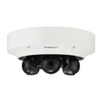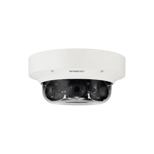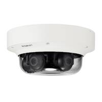 Wisenet P series network vandal outdoor Multi-Sensor Multi-Directional dome camera provides 3x 2MP sensors for a total resolution of 6MP. Each camera head features 30fps, a motorized vari-focal lens 2x (3.0~6.0mm) (107°~56.3°), maximum 321° FoV, triple codec H.265/H.264/MJPEG with WiseStream II technology, 150dB WDR, defocus detection, built-in analytics, true D/N, 2x SD card slots, hallway view, HLC, PoE+, IP66/IK10, -40°C ~ +55°C (-40°F ~ +131°F), White camera body.
