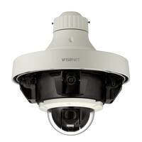 Network vandal outdoor Multi-sensor Multi-Directional camera, (2MP/5MP X 4 sensors sold separately) 8MP ~20MP (2MP @ 60fps or 5MP @30fps) fixed focal lens modules + 2MP 32x optical zoom PTZ, triple codec H.265/H.264/MJPEG with WiseStream II technology, 150dB WDR @ 2MP or 120dB @ 5MP, defocus detection, built in analytics, 4x SD card, hallway view, HLC, fog detection, DIS(Gyro Sensor), HPoE (Injector included), IP66/IK10, -35°C ~ +55°C (-31°F ~ +131°F)