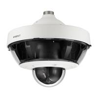 Network vandal outdoor Multi-sensor Multi-Directional camera, (2MP/5MP X 4 sensors sold separately) 8MP ~ 20MP (2MP @ 60fps or 5MP @30fps) fixed focal lens modules + 2MP 32x optical zoom PTZ, triple codec H.265/H.264/MJPEG with WiseStream II technology, 150dB WDR @ 2MP or 120dB @ 5MP, defocus detection, built in analytics, 4x SD card, hallway view, HLC, fog detection, DIS(Gyro Sensor), Audio I/O (PTZ ch only), HPoE (injector included), IP66/IK10, -40°C ~ +55°C (-40°F ~ +131°F). White camera body. New easy installation cap. SFP port in injector.