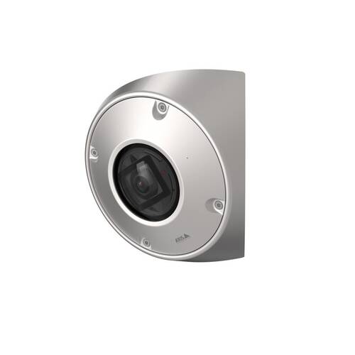 Robust stainless steel corner-mount camera replacing AXIS Q9216. This all-in-one device combines sharp video, audio, actionable analytics, indication RGB LEDs, white illuminator, built in microphone and speaker supporting 2 way communication with echo cancelation. Comes with fall detection, and Axis audio analytics (glass, scream, cough). Other key features: Anti-ligature, IK11, IP66, IP6k9k, 5MP, A8 DL Soc, Compatible Audio Manager Pro, forensic WDR, >89,2° VFoV, >115° HFoV, 940nm LEDs for invisible IR.