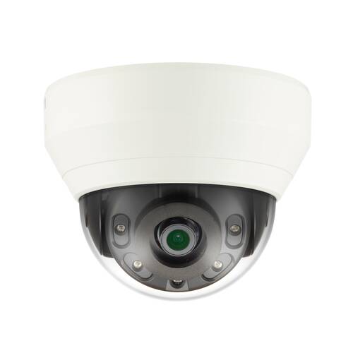 The QND-7010R from Hanwha's Q Series affordable network camera line is a 4MP indoor dome network camera featuring WiseStream, Hanwha's compression technology, triple codec H.265/H.264/MJPEG, 2.8mm lens, IR, PoE/12VDC, 120dB True WDR, Defocus Detection, Hallway View, one-way audio and SD card slot (SD/SDHC/SDXC up to 128GB).