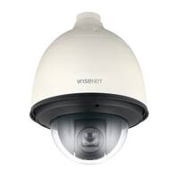 Wisenet Q network outdoor PTZ camera, 2MP, Full HD(1080p) 30fps, H.265/H.264/MJPEG, Optical Zoom Lens 23x (4.44-102.1mm), 120dB WDR, true D/N, 500°/sec Pan, SD/SDHC/SDXC, 24VAC/PoE+, Analytics, IP66, IK10, Low temperature heater for -58°F 24VAC operation.