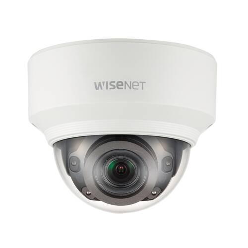 Wisenet X powered by Wisenet 5 network IR indoor vandal dome camera, 5MP @30fps WDR off/on, Motorized Vari-Focal Lens 2.4x (3.9~9.4mm) (92.1°~38.7°), H.265/H.264/MJPEG, WiseStream II compression technology, 120dB WDR, USB port for easy installation, Advanced video analytics and sound classification, High powered IR LEDs range of 98', True D/N, Dual SD card, Hallway view, HLC, Defog detection with simple focus, DIS , 12VDC/PoE, IK08