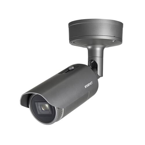 X series powered by Wisenet 5 network IR outdoor vandal bullet camera with 32GB SD Card, pre-installed and licensed RoadWatch ANPR application; List Management, Smart Search, Statistics, Barrier Trigger, ANPR Setup Wizard, Integration with WAVE VMS, JSON & UTMC protocols, 2MP @60fps, Full HD(1080p), 5.2 ~ 62.4mm optical zoom lens (12x) (54.58°~5.30°), triple codec H.265/H.264/MJPEG with WiseStream II, Multiple streaming, 150dB WDR, True Day & Night (ICR), High Powered IR LEDs with IR viewable length 70m, HLC, Handover, Digital Image Stabilization with built-in Gyro sensor, Bi-directional audio, IP67, IK10, Nema 4X, PoE/12VDC/24VAC