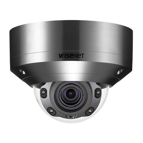 Wisenet X powered by Wisenet 5 network IR outdoor stainless steel vandal dome camera, 5MP @60fps, 3.9 ~ 9.4mm motorized vari-focal lens (2.4x) (92.1°~38.7°), triple codec H.265/H.264/MJPEG with WiseStream II, Multiple streaming, 120dB WDR, True Day & Night (ICR), High Powered IR LEDs with IR viewable length 50m, Advanced Video Analytics and Sound Classification, Hallway View, Motion detection, Fog detection, HLC, Handover, Digital Image Stabilization, Bi-directional audio and dual microSD/SDHC/SDXC slot, USB port for easy installation, IP66, IP6K9K, IK10+, Nema 4X, PoE/12VDC/24VAC.