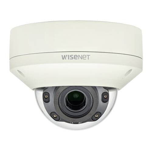 Wisenet X powered by Wisenet 5 network outdoor vandal dome camera, 2MP, Full HD(1080p) @60fps, motorized vari-focal lens 3.1x (3.2~10mm) (109°~33.2°), triple codec H.265/H.264/MJPEG with WiseStream II technology, 120dB WDR, USB port for easy installation, high powered IR LEDs range of 98.43', true D/N, single SD card, hallway view, HLC, defog detection, DIS, PoE, IP66, IK10, -40°C ~ +55°C (-40°F ~ +131°F)