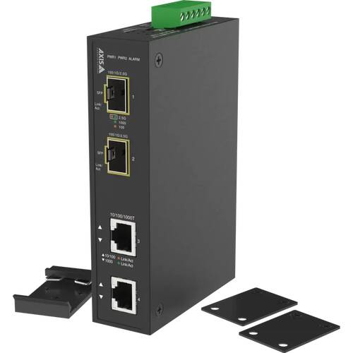 AXIS TU8008 Media Converter supports daisy-chain connections, with camera capacity dependent on bit rate and link limitations. Ideal for long-distance installations like city surveillance and airports, it mitigates lightning risks and enables remote camera maintenance via monitors or laptops. It also offers easy conversion with RJ45 and dual SFP slots for cost-effective long-distance connections. It supports additional cameras or temporary laptop links for local service (external power required). Flexible installation options include wall or DIN rail mounting, with reliable operation across a wide temperature range (-40°C to +75°C).