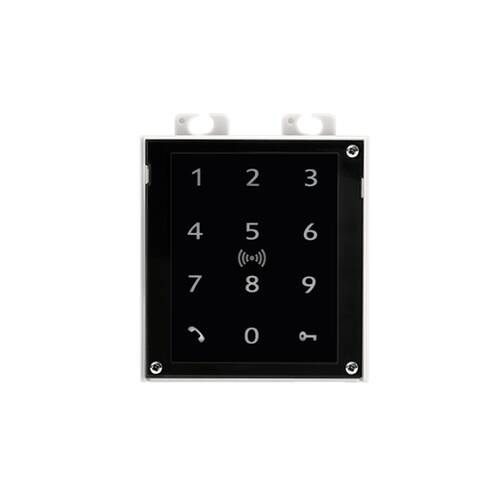 The module that combines an RFID reader with capacitive touch keypad for 2N® IP Verso and 2N® LTE Verso intercoms. This compact module uses multi-frequency RFID reader that allows a gradual employment of new smart 13.56 MHz cards while continual use of the unsecure 125 kHz ones for the necessary time. Touch keypad is used for access control to the building via PIN code as well as for calling to individual users.