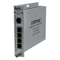 The ComNet CNFE5SMSPOE is a five-port self-managed Ethernet switch with uplink management functionality. It provides 5 ports operating at 10 / 100Mbs and is designed to combine Ethernet data from the four electrical ports into a fifth electrical port and forward that data to the next network device. There is no programming required to use this product. The ComNet CNFE5SMSPOE comes pre-programmed, preventing network video flooding with a switch selection that allows the switch to be used as an uplink or as an unmanaged switch. Ports 14 can supply up to thirty (30) watts of power (Power over Ethernet) and incorporate PoE + features based on the IEEE 802.3at standard. It's plug and play easy to use. LED indicators confirm the operating status of this device. The ComNet CNFE5SMSPOE may be either wall mounted, rack mounted (ComFit packaging) or DIN-rail mounted with the use of the ComNet DINBKT1 adapter.