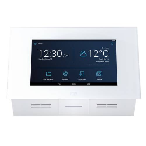 The 2N® Indoor Touch 2.0 answering unit guarantees reliable video door communication. The Android OS, more powerful hardware and simple user interface make it easy to integrate the 2N® Indoor Touch 2.0 with third-party applications. For example, home automation systems can be comfortably operated on the 7“ touch screen made of tempered glass.
