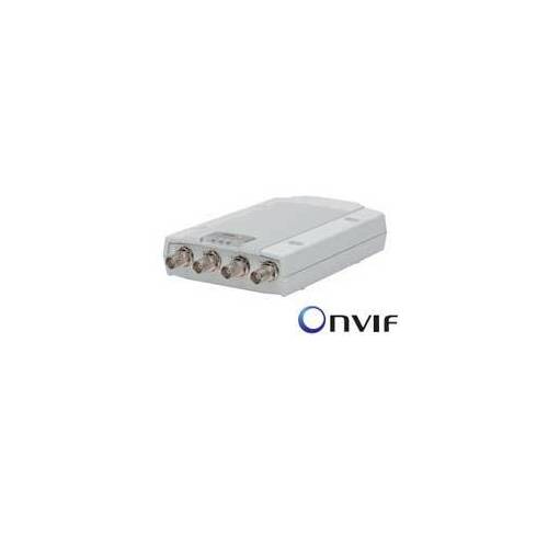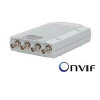 4-channel Video Encoder Table model Simultaneous (1) H.264 and (1) Motion JPEG streams per channel Resolutions: 176x120 to 720x576 and176x120 to 1536x1152 for quad view Up to 15fps in all resolutions Intelligence: motion detection and tamper alarms Power supply via PoE or 8 ~ 20V DC 10BASE-T / 100BASE-TX Ethernet (RJ45) Energy consumption up to 7 Watt Image rotation 90, 180 and 270 degrees 1 microSDHC slot PTZ support via driver upload No IO or Audio