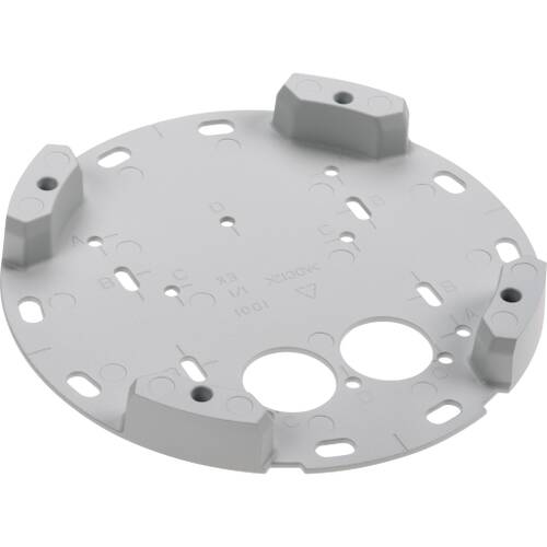 Spare part mounting bracket in aluminum for wall- or hard ceiling installations. Also for mounting the camera on gang/junction boxes.