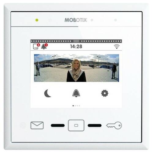 MxDisplay is a wall-mountable Building Automation Server with touchscreen display, incorporating WiFi and RFID functionality. From this central glass console,you can add and configure all MOBOTIX devices. Multiple MxDisplayscan be wirelessly connected, each being powered via PoE.
