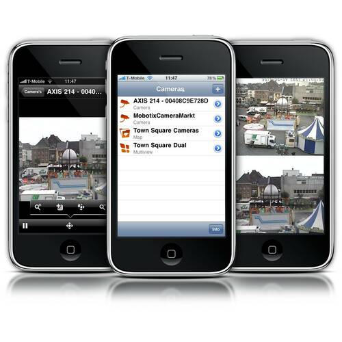 NetcamViewer Mobile has been specially developed for camera viewing on mobile devices, of which the iPhone is currently the first. With NetcamViewer Mobile you have access to your IP cameras in a few finger movements. In addition, you have an intuitive control of your PTZ cameras and the option to use digital PTZ. With the multiview option you have the option to view multiple cameras on one screen.