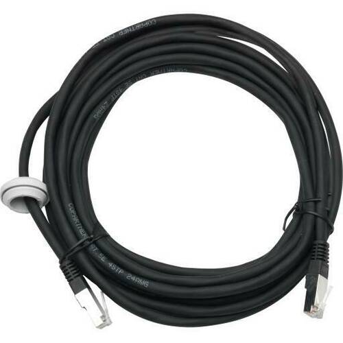 Network cable with gasket, 5 m (16 ft) is a shielded outdoor network cable with a pre-mounted rubber gasket and male RJ45 connectors.