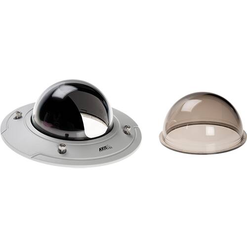 Dome Kit for AXIS P3343-VE, P3344-VE, AXIS P3363-VE and AXIS P3364-VE as spare part. Includes a clear bubble, mounted on an aluminium dome cover and a separate smoked bubble. 1 piece