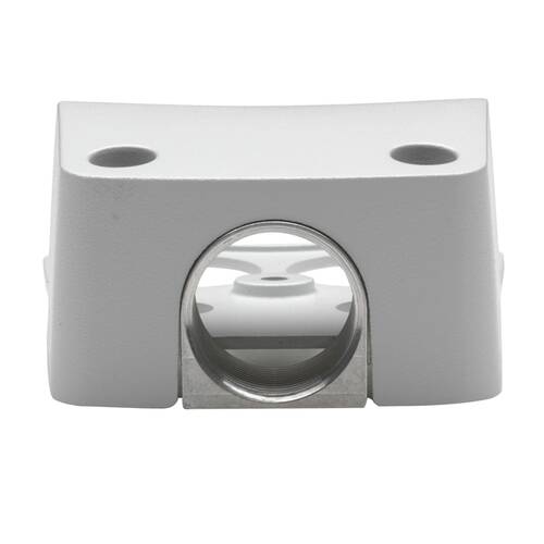 Aluminum cable cover with stainless steel adapter used for mounting 3/4" NPS or NPT pipes to AXIS P33XX-VE cameras for cable protection. Four complete units.