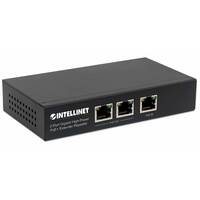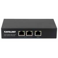 The Intellinet Network Solutions 2-Port Gigabit High-Power PoE+ Extender Repeater extends connection distances from a PoE source to two output devices up to 100 m (328 ft.) via Cat5e or Cat6 cable. The PoE+ extender does not need any additional power supply, as it draws the power it needs from the PoE input.