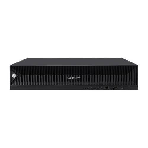 32CH 8K/32MP NVR, triple codec H.265/H.264/MJPEG compression, 400Mbps network camera recording / 32Mbps playback throughput, ARB (Automatic Recovery Backup) & Failover (N+1), up to 8 SATA HDD (80TB max), HDMI local dual monitor, SUNAPI, ONVIF, Easy configuration (P2P), AI search, no HDD included.