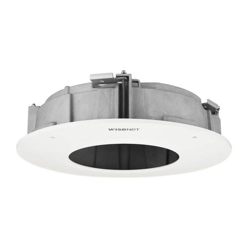 The SHD-2510FPW is a white in-ceiling plenum flush mount housing for the PNM-9084QZ / PNM-8082VT. The housing allows the camera to blend into the installation environment.
