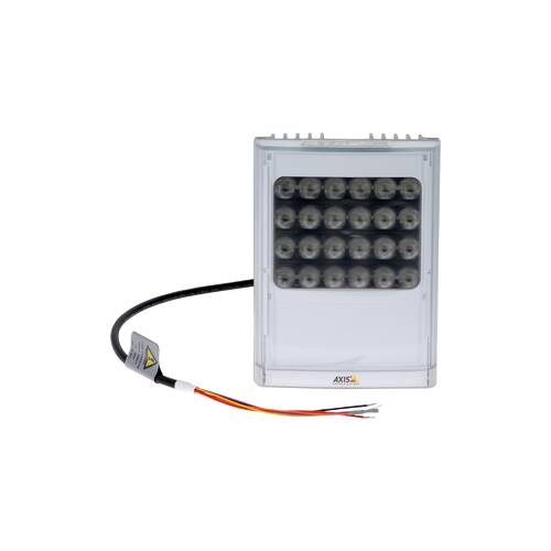 White LED illuminator for Axis network cameras. Included interchangeable diverging lenses providing 10°, 35°, 60° & 80° beam angles. Beam distance ranges 35m to 180m (115ft to 590ft). Made of IK09 impact-resistant aluminium and polycarbonate. IP66 and NEMA 4X ratings. Operating temperature -50°C to 50°C (-58 °F to 122 °F). 12/24 V DC or AC input.