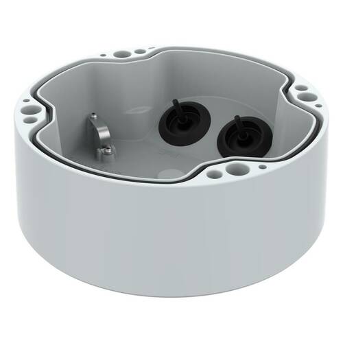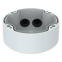 A conduit back box that gives more space needed for installation. Deeper flush-mounted box than is supplied with the product and existing flush-mounted box. Compatible with P1455-LE, P1467/8-LE. Comes in Axis white and is IP66 and IK10.