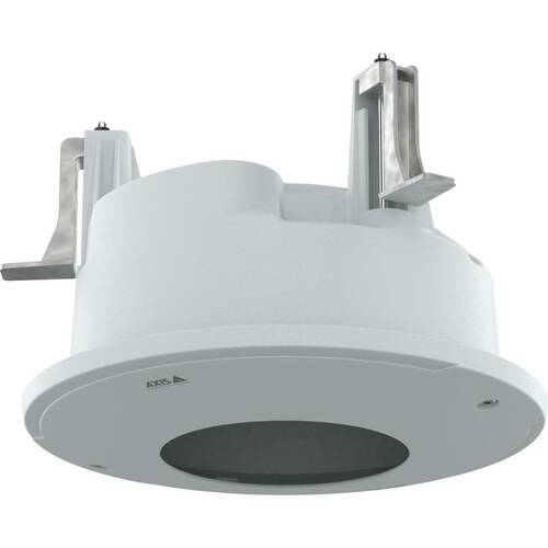 AXIS TQ3202-E is designed for discreet installation of selected AXIS Q36 cameras. The mounted camera is embedded into the ceiling, with only the camera dome and low-profile cover ring visible.