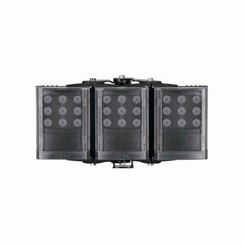 Delivering world leading power and illumination distances VARIO2 next generation illuminators can improve the performance of any video surveillance system at night. VARIO2 illuminators use PLATINUM Elite SMT LED technology to deliver more power and greater distances from a smaller platform than current generation illuminators. Providing a broader range of solutions, the VARIO2 series also offers a suite of advanced security features for easier programming and safer operation of smart lighting systems. VARIO2 features an interchangeable lens system with Hot-spot Reduction Technology, and Adaptive Illumination™ on double and triple panel models to deliver highly even illumination, where it is most needed, for outstanding night-time images. With the optional hand-held remote control, VARIO2 also makes installation and commissioning quicker, easier and safer. The VARIO2 i4-3 Infra-Red series delivers maximum distances up to 260m (853ft).