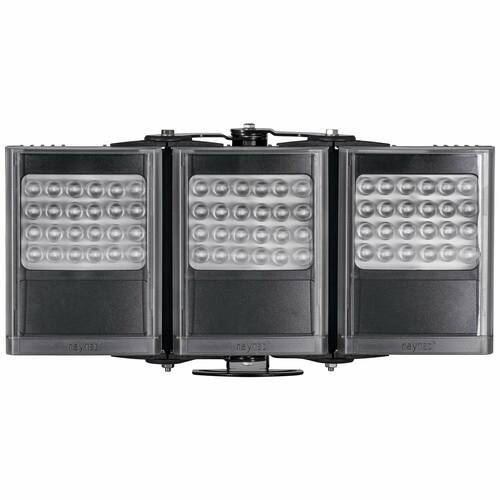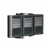 Delivering world leading power and illumination distances VARIO2 next generation illuminators can improve the performance of any video surveillance system at night. VARIO2 illuminators use PLATINUM Elite SMT LED technology to deliver more power and greater distances from a smaller platform than current generation illuminators. Providing a broader range of solutions, the VARIO2 series also offers a suite of advanced security features for easier programming and safer operation of smart lighting systems. VARIO2 features an interchangeable lens system with Hot-spot Reduction Technology, and Adaptive Illumination™ on double and triple panel models to deliver highly even illumination, where it is most needed, for outstanding night-time images. With the optional hand-held remote control, VARIO2 also makes installation and commissioning quicker, easier and safer. The VARIO2 i8-3 Infra-Red series delivers maximum distances up to 606m (1988ft).