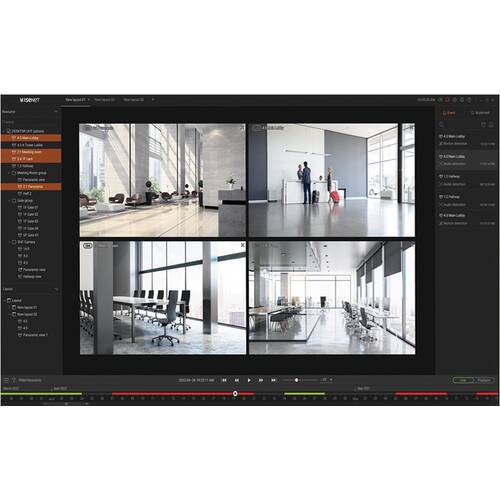 Wisenet Viewer NVR/DVR management software, supports Windows and macOS, AI search (person, face, vehicle, license plate recognition). Free software with an app for iOS and Android.