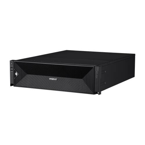 32CH 32MP NVR, triple codec H.265/H.264/MJPEG compression, 400Mbps network camera recording / 64Mbps playback throughput, ARB (Automatic Recovery Backup) & Failover (N+1), up to 16 SATA HDD (160TB max), iSCSI storage, RAID-5/6 support, HDMI local dual monitor, SUNAPI, ONVIF, Easy configuration (P2P), AI search support when working with Wisenet AI camera, no HDD included.